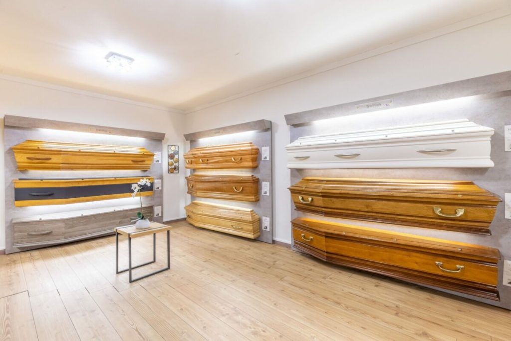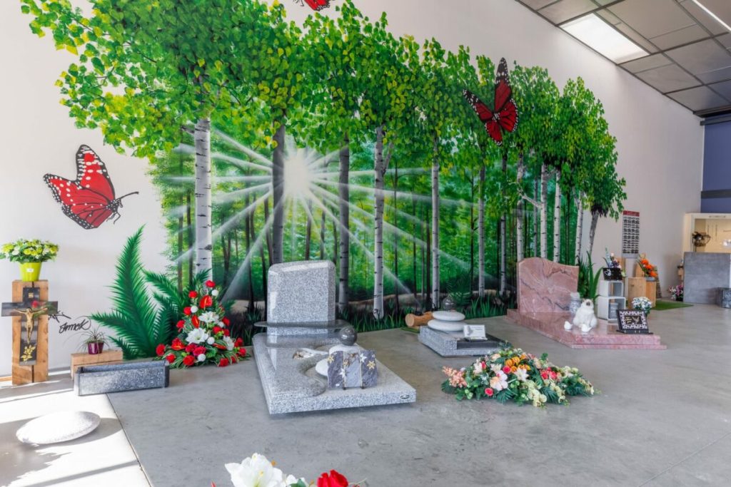 - – les articles : cercueil, capiton, urne, fleurs, plaques;